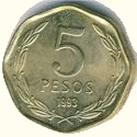 | Chile | 5 pesos | ![]() | ![]() | 1 | Oběžná | Chilské peso |
