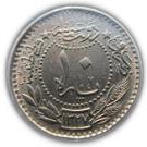 TureckoOsmanská říše 1844 – 192320 para1909 – 19151Mehmed V.OběžnáTurecká lira