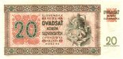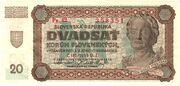 | Slovensko | Slovensko (1939 – 1945) | 20 korun | ![]() | ![]() | 1 | Oběžná | Koruna Slovenska |