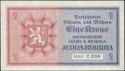 | Československá republika | Protektorát Čech a Moravy (1940 – 1944) | 1 koruna | ![]() | ![]() | Ručně razítkované | 1 | Oběžná | Československá koruna |