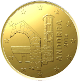 Andorra![]() | 50 centů | ![]() | Mince v hodnotě 50 centů zobrazuje románský kostel v Santa Coloma. | 1 | |