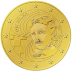 Řecko![]() | 2 eura | ![]() | Na minci 2 eura je zobrazena scéna z mozaiky ve Spartě (3. stol. n. l.) zobrazující Európu unášenou Diem, který na sebe vzal podobu býka. Európa je postava z řecké mytologie, po které byla pojmenována Evropa. | 1 | |