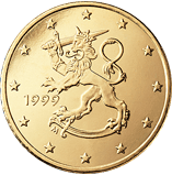 Finsko![]() | 50 centů | ![]() | Na minci v hodnotě 50 centů je zobrazen heraldický lev jako reprodukce díla, které vytvořil sochař Heikki Häiväoja. Heraldický lev byl v minulosti v různých obměnách vyobrazen na několika finských mincích, například na minci v hodnotě 1 marka v letech 1964 až 2001. | 1 | |