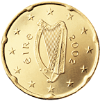 Irsko![]() | 20 centů | ![]() | Na minci je vyobrazena keltská harfa (tradiční symbol Irska), rok vydání mince a slovo „Éire“ (Irsko v irštině). | 1 | |