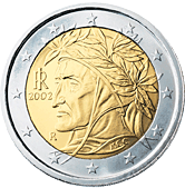 Itálie![]() | 2 eura | ![]() | Na minci 2 eura je zobrazen Rafaelův portrét Danta Alighieriho. Obraz je umístěn ve vatikánském Papežském paláci v křídle papeže Julia II. | 1 | |