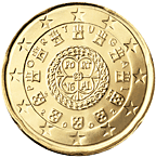 Portugalsko![]() | 50 centů | ![]() | Hlavním motivem na minci v hodnotě 50 centů je královská pečeť z roku 1142. | 1 | |