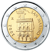 San Marino![]() | 2 eura | ![]() | Vládní palác San Marino | 1 | |