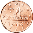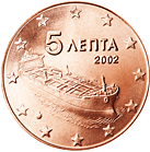 | 1 cent |  | Na minci 1 cent je zobrazen model aténské trirémy, největší válečné lodi z doby aténské demokracie (5. stol. př. n. l.). Po dalších 200 let neměla tato loď co do velikosti konkurenci. | 1 |