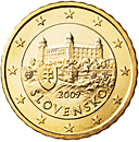 | 10 centů |  | Na minci v hodnotě 10 centů je vyobrazen Bratislavský hrad a státní znak Slovenska. | 1 |
