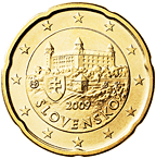 | 20 centů |  | Na minci v hodnotě 20 centů je vyobrazen Bratislavský hrad a státní znak Slovenska. | 1 |