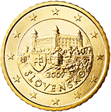 | 50 centů |  | Na minci v hodnotě 50 centů je vyobrazen Bratislavský hrad a státní znak Slovenska. | 1 |