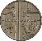 | Spojené království | Alžběta II. (1952 – 2022) | 5 pencí | ![]() | ![]() | magnetická | 1 | Alžběta II. | 4. portrét | Royal shield - magnetický (2011 – 2015) | Oběžná | Libra šterlinků |