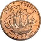 | Spojené království | Alžběta II. (1952 – 2022) | ½ penny | ![]() | ![]() | 1 | Alžběta II. | 1. portrét | Oběžná | Libra šterlinků | ||