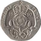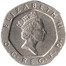 | Spojené království | Alžběta II. (1952 – 2022) | 20 pencí | ![]() | ![]() | 1 | Alžběta II. | 4. portrét | Oběžná | Libra šterlinků | ||