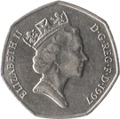 | Spojené království | Alžběta II. (1952 – 2022) | 50 pencí | 0 | Alžběta II. | 5. portrét | Royal shield | Oběžná | Libra šterlinků | |||