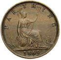 | Spojené království | Viktorie I. (1837 – 1901) | 1 farthing | ![]() | ![]() | 1863 | 1 | Viktorie I. | Oběžná | Libra šterlinků | ||