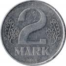 | Německo | Východní Německo (1949 – 1990) | 2 marky | ![]() | ![]() | 1 | Druhá série minci | Oběžná | Východoněmecká marka | ||
