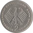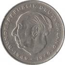 | Německo | Západní Německo a Německo po sjednocení (1949 – 1999/2002) | 2 marky | ![]() | ![]() | Theodor Heuss – 20 let Spolkové republiky Německo | 1 | Pamětní oběžná | Německá marka | ||